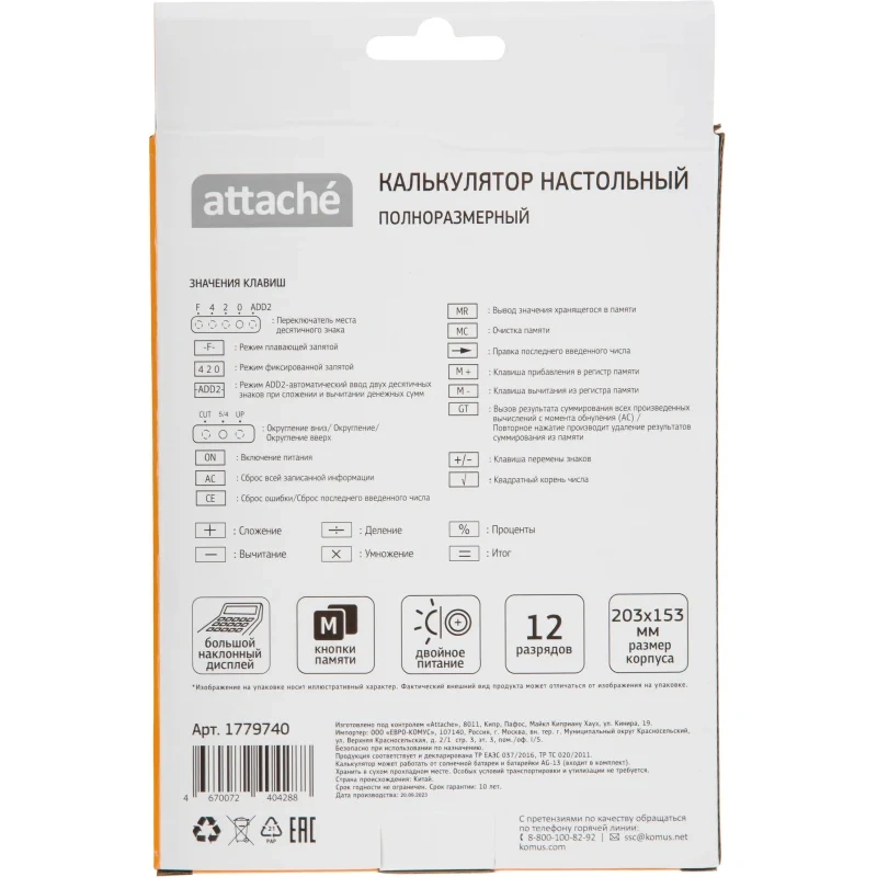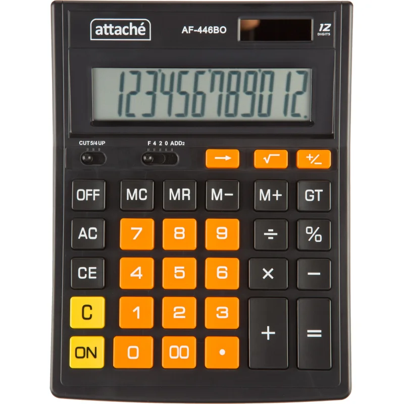 Калькулятор Attache полноразмерный настольный AF-446BО настольный с 12-разрядным ЖК-дисплеем.