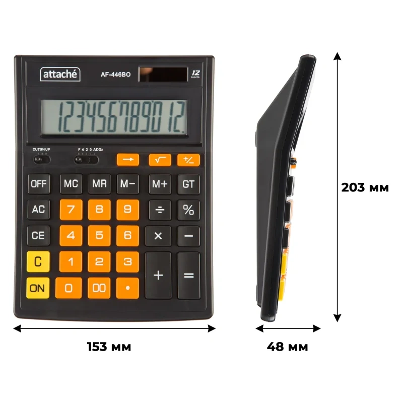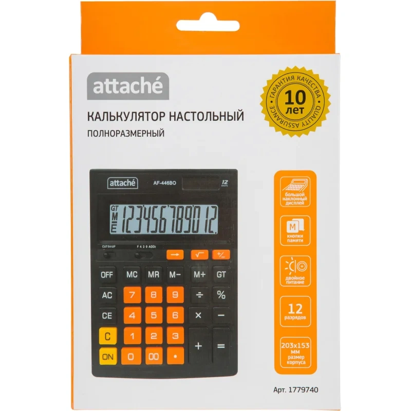 Калькулятор настольный ПОЛНОРАЗМ Attache AF-446BO,12р,дв.п,ч/ор,203x153x48