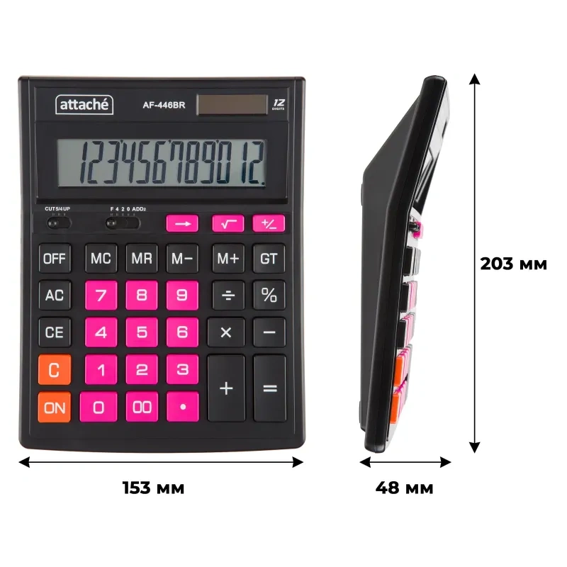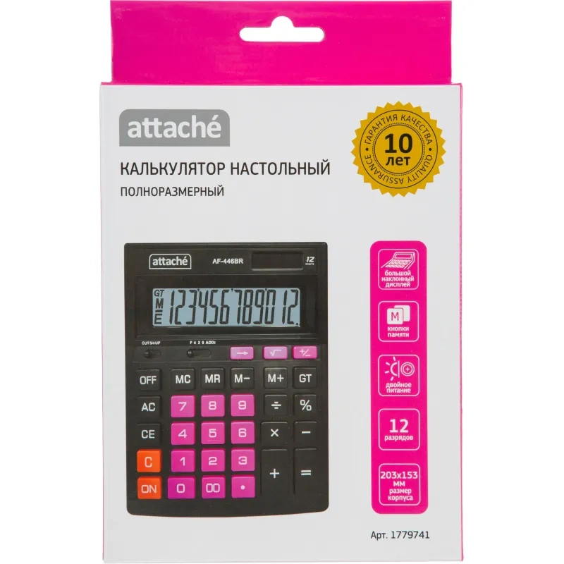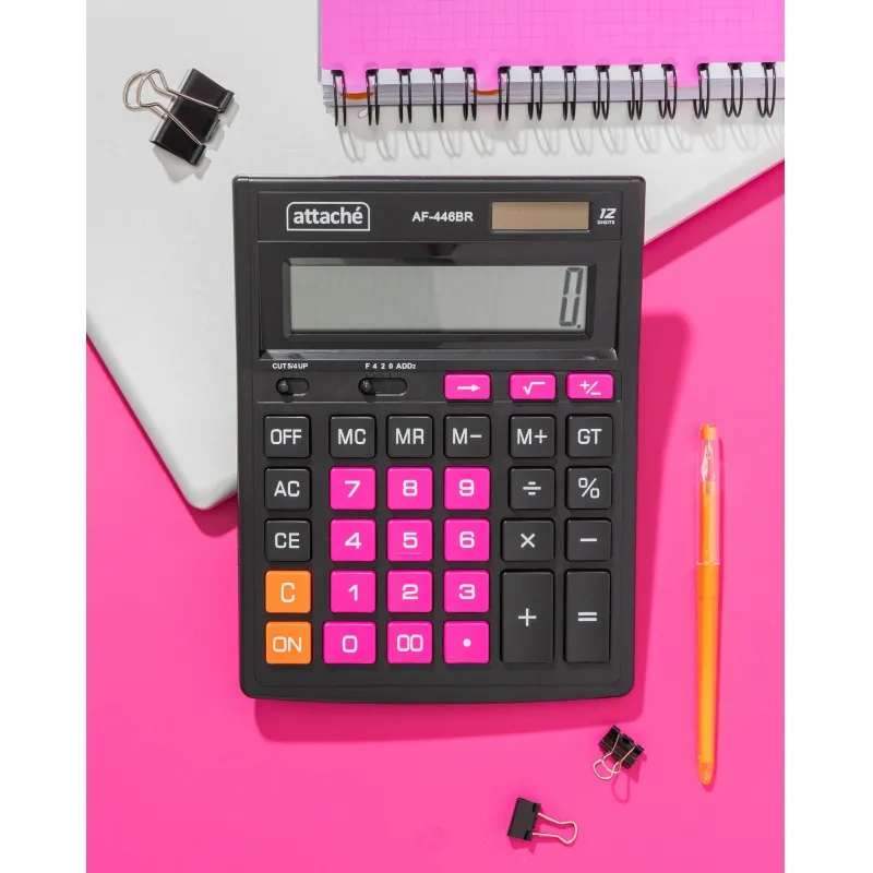 Калькулятор настольный ПОЛНОРАЗМ Attache AF-446BR,12р,дв.п,ч/роз,203x153x48