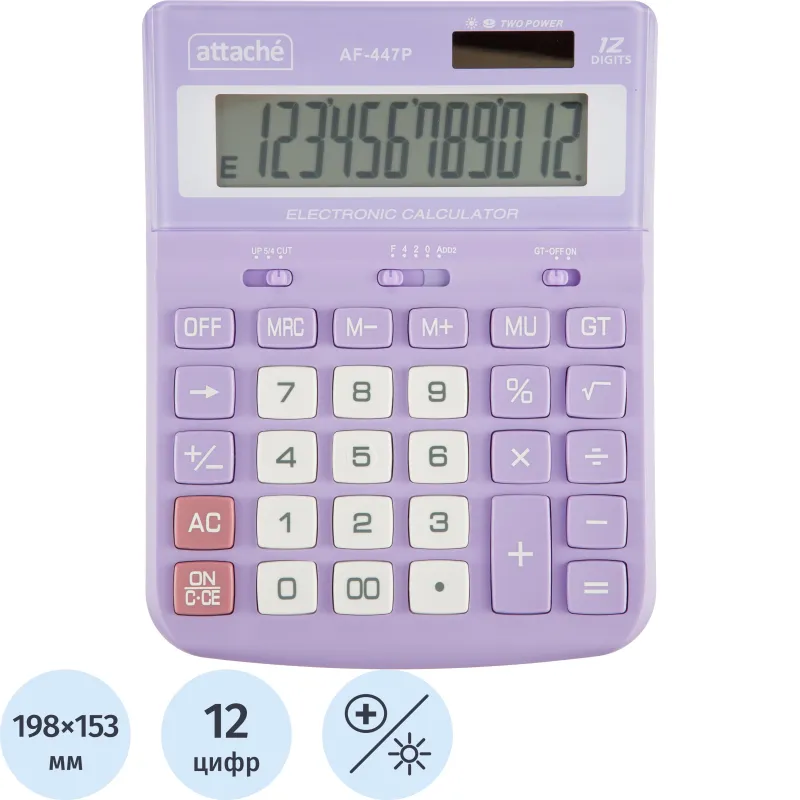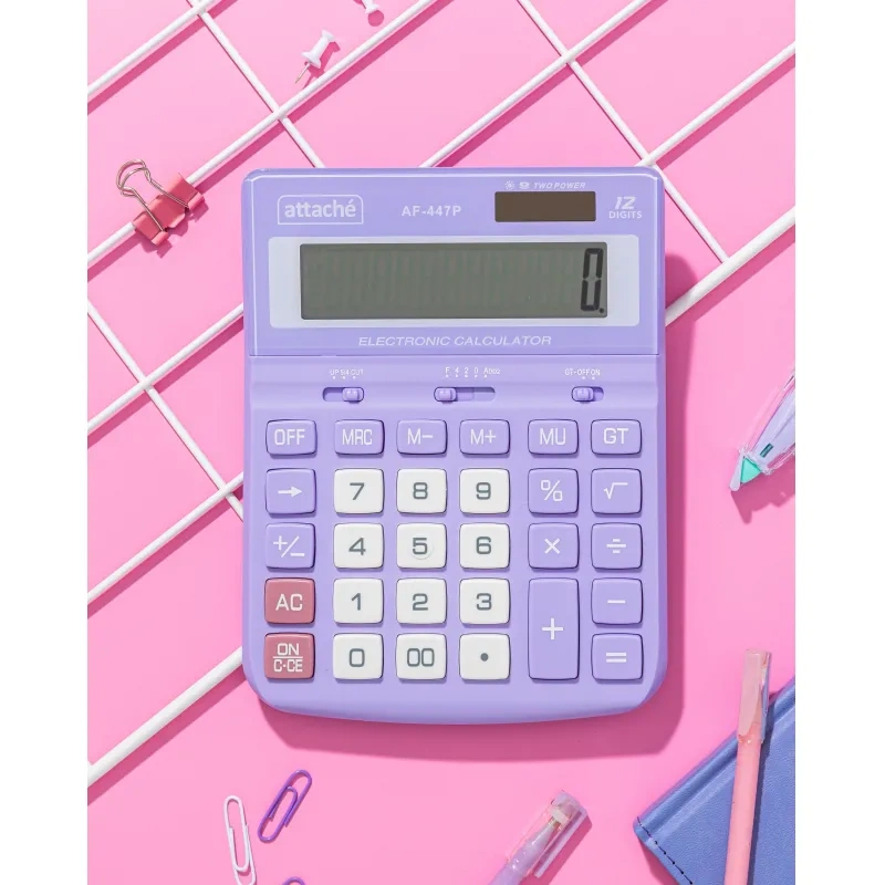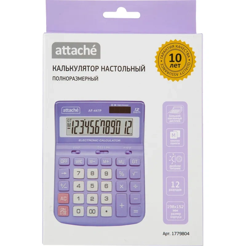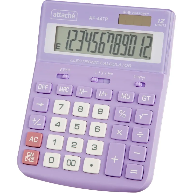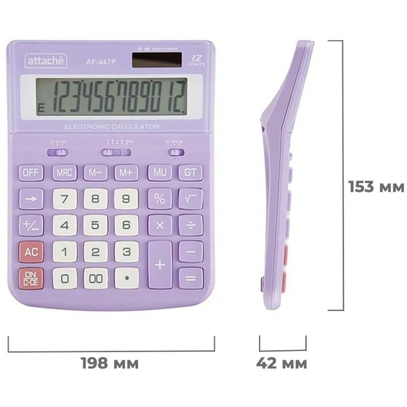 Калькулятор настольный ПОЛНОРАЗМ Attache AF-447P,12р,дв.пит,фиол,198x153x42
