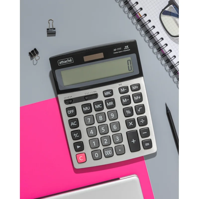 Калькулятор настольный ПОЛНОРАЗМ. Attache AF-777 16р,дв.пит,209x154мм, черн