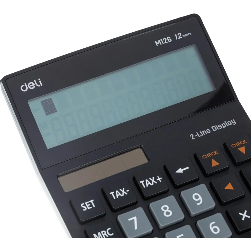 Калькулятор настольный ПОЛНОРАЗМ. Deli EM126,12-р,2стр,дв.пит,182х129мм,чер