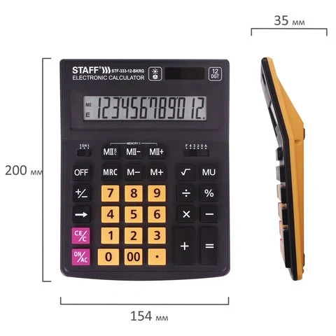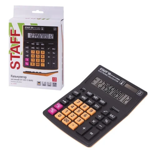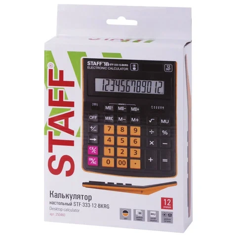 Калькулятор настольный Staff Plus STF-333-BKRG черный-оранжевый, 12 разрядов