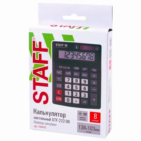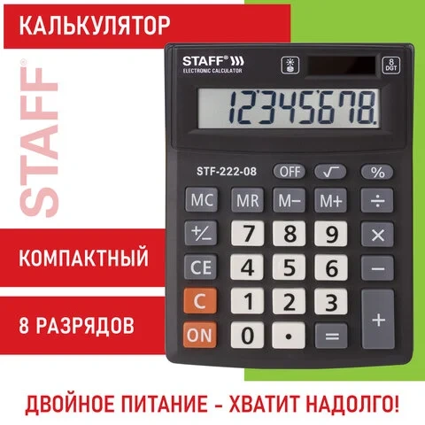 Калькулятор настольный Staff STF-222 черно-серый, 8 разрядов
