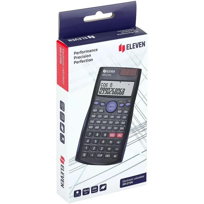 Научный калькулятор Eleven серии SR-270N поможет достигнуть ученикам впечатляющих результатов в учебе. Разрядность: 10+2. 240 научных функций сделают процесс изучения увлекательным и интересным. Двойное питание (солнечная батарея + батарея AAA) и автоматическое отключение увеличивают срок службы. Размер калькулятора – 82*162*16 мм, вес – 135 г, цвет – чёрный. Жесткая крышка сохранит калькулятор от повреждений. Модель подходит для использования на ЕГЭ по физике, химии и географии. Гарантия 3 года.