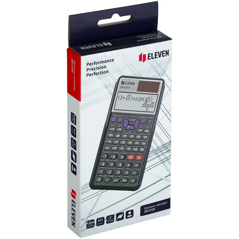 Калькулятор научный Eleven SR-270X, матричный дисплей, 417 функций, двойное питание, 81*165*16 мм, ч
