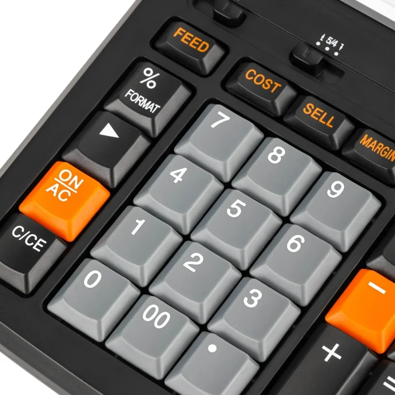 «Вычислительный калькулятор EM121-EU 12-ти разрядный, с принтером от производителя бренда Deli. Предназначен для математических расчетов как в офисе, так и торговых помещениях. Компактный корпус из качественных материалов, удобный интерфейс, стильный дизайн, продуманная эргономика и надежные технологии делают этот калькулятор незаменимым помощником при решении несложных математических расчетов. Двойное питание осуществляется при помощи батарейки AAA либо подключения к сети через адаптер. Благодаря наличию принтера, введенные данные мгновенно распечатываются на чековой бумаге.