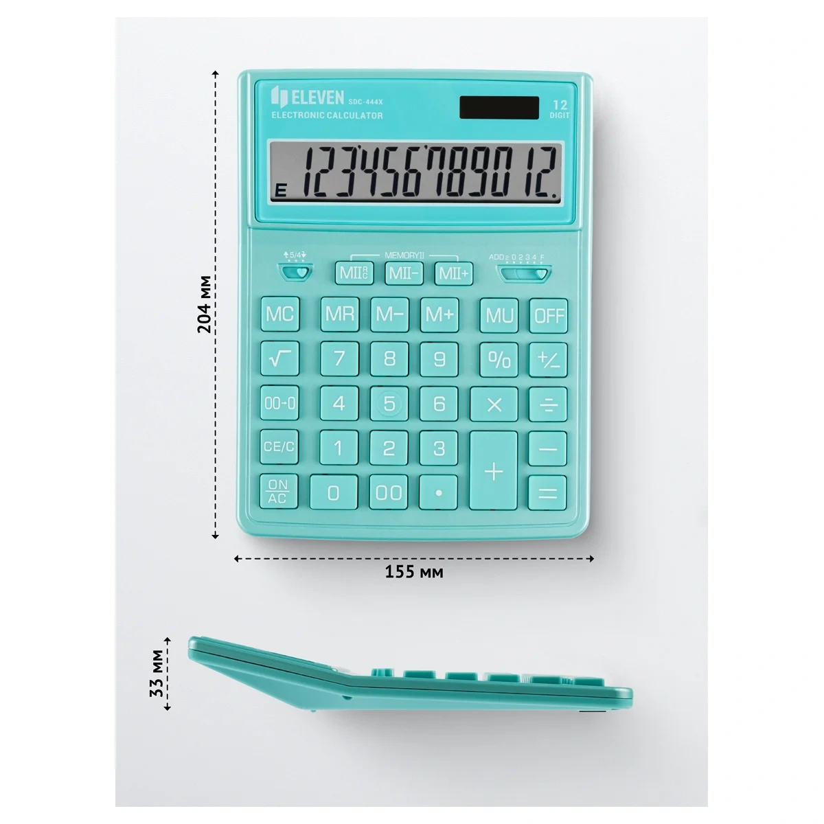 Калькулятор настольный Eleven SDC-444X-GN бирюзовый, 12 разрядов