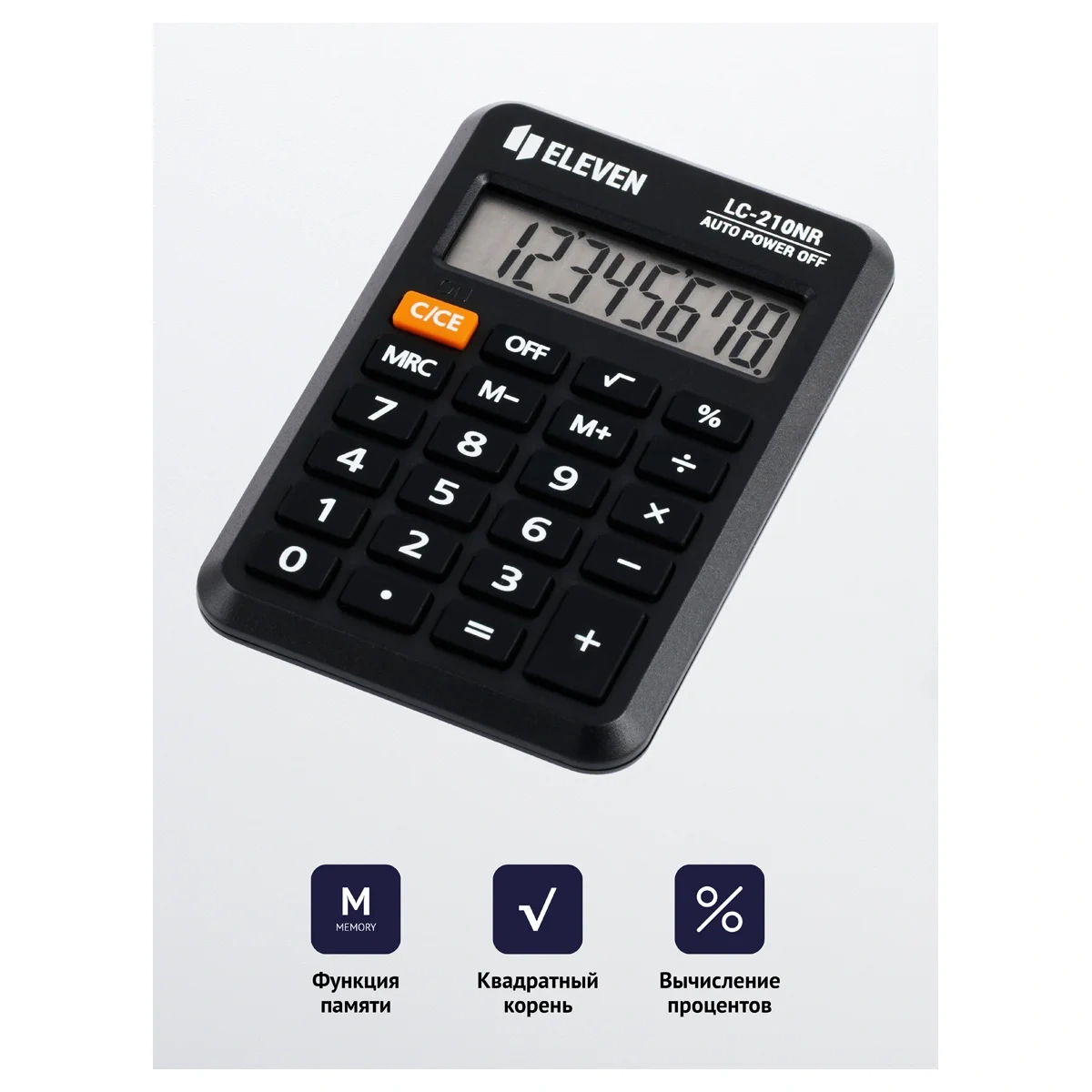 Калькулятор карманный Eleven LC-210NR черный, 8 разрядов