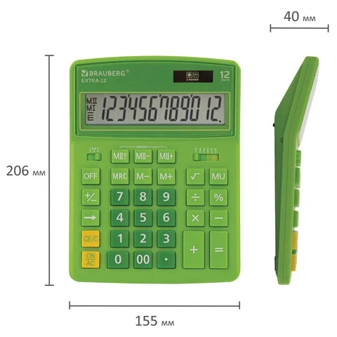Калькулятор настольный BRAUBERG EXTRA-12-DG (206x155 мм), 12 разрядов, двойное питание, ЗЕЛЕНЫЙ, 250