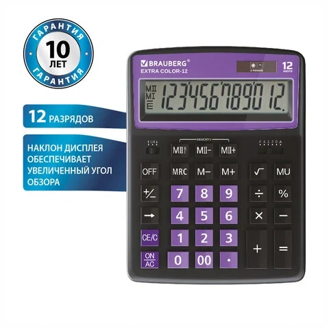 Калькулятор настольный BRAUBERG EXTRA COLOR-12-BKLG (206x155 мм), 12 разрядов, двойное питание, ЧЕРН