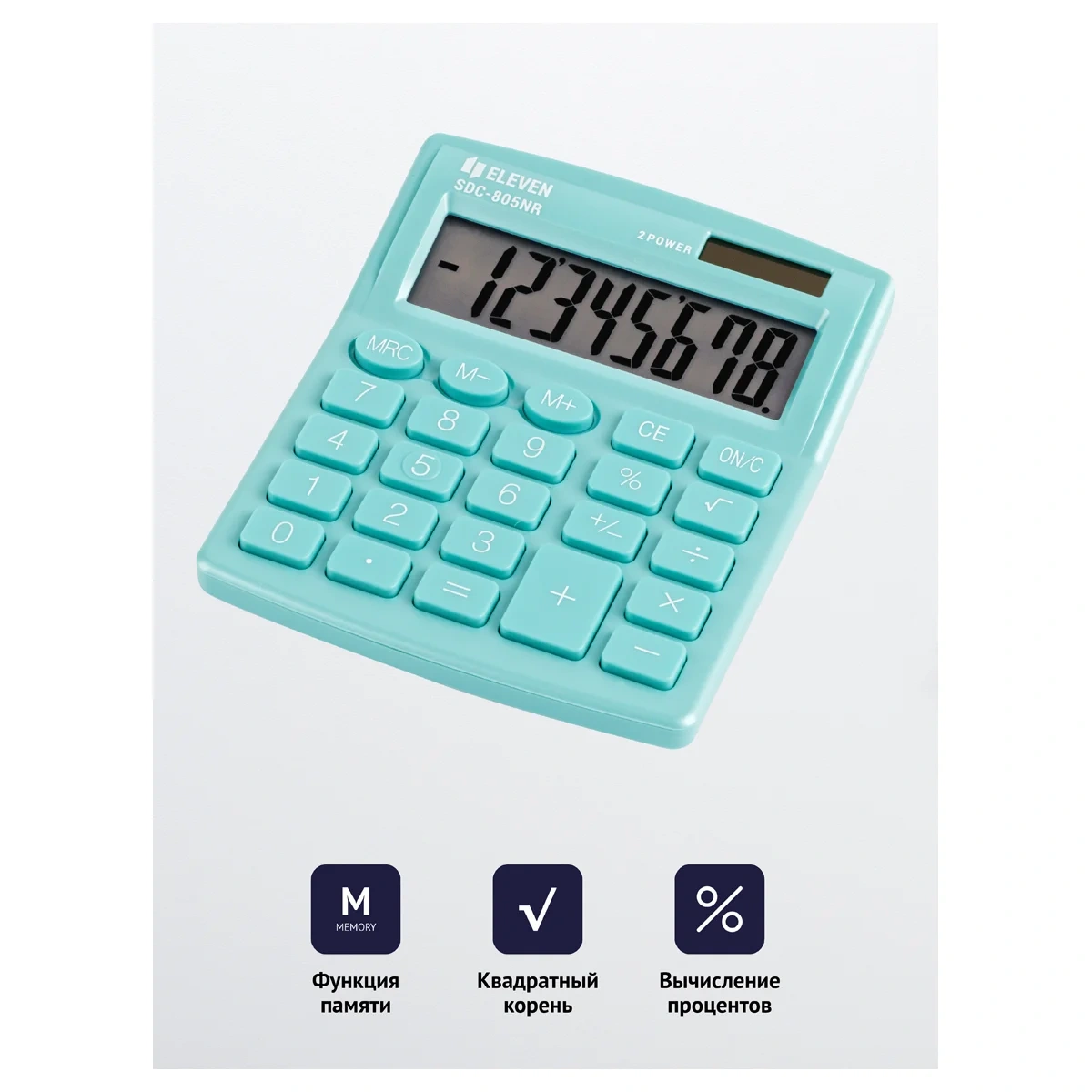 Калькулятор настольный Eleven SDC-805NR-GN бирюзовый, 8 разрядов
