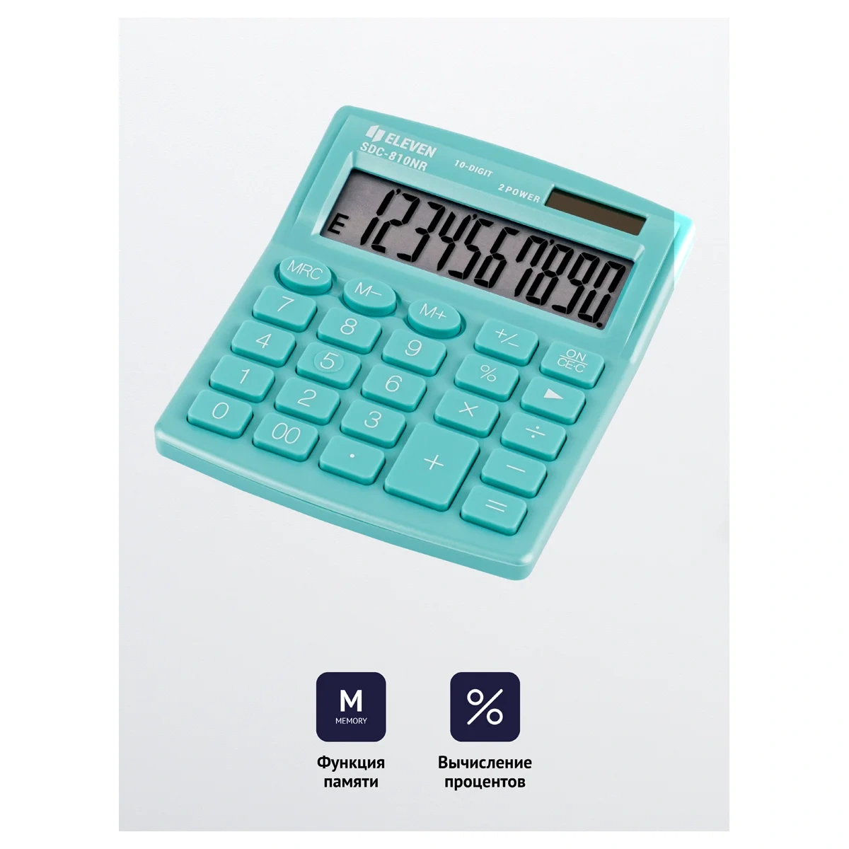 Калькулятор настольный Eleven SDC-810NR-GN бирюзовый, 10 разрядов