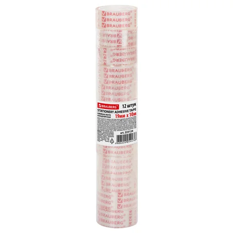 Канцелярская клейкая лента Brauberg 19мм х10м, прозрачная, 12шт/уп