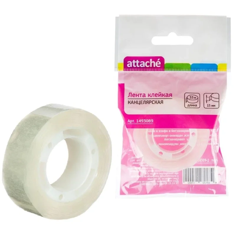 Канцелярская клейкая лента Attache 19мм х33м, прозрачная, на пластиковой втулке