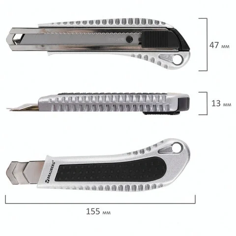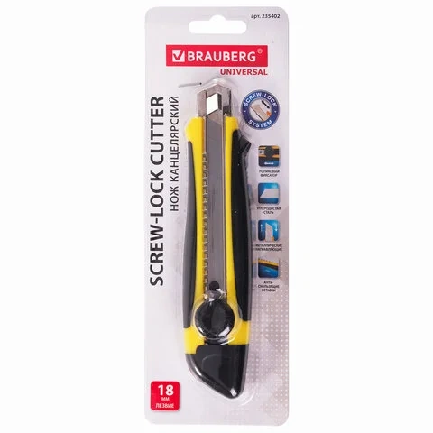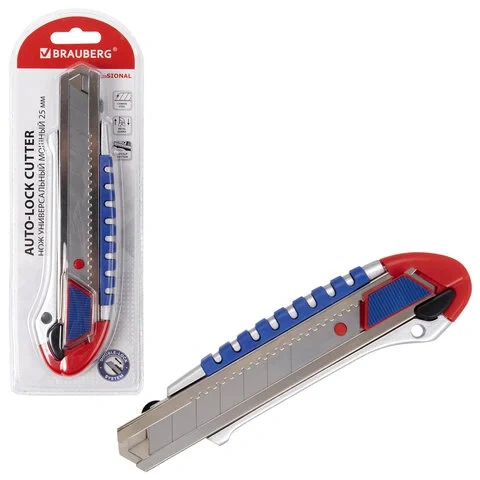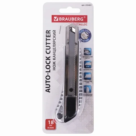 Канцелярский нож Brauberg 18мм, металлический корпус, автофиксатор