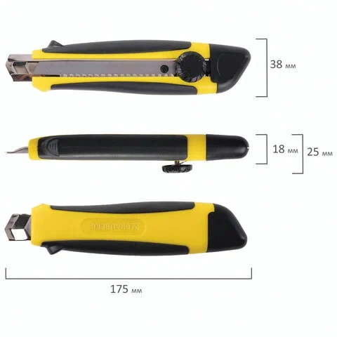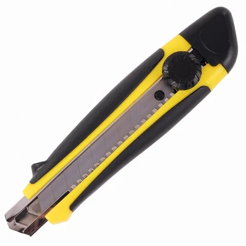 Канцелярский нож Brauberg 18мм, металлический корпус, роликовый фиксатор, резиновые вставки
