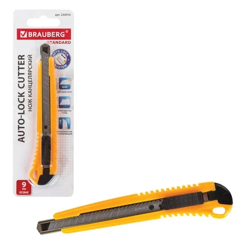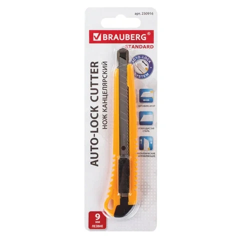 Канцелярский нож Brauberg 9мм, ассорти, блистер