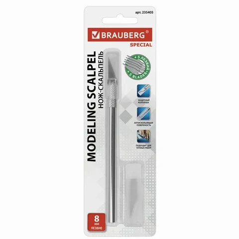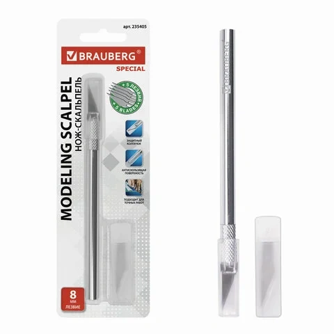 Канцелярский нож-скальпель Brauberg 8мм, металлический корпус, + 5 запасных лезвий