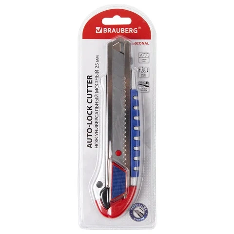 Нож универсальный мощный ширина 25 мм BRAUBERG 'Professional', металлический корпус, 237448