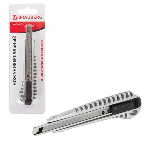 Канцелярский нож Brauberg Metallic 9мм, автофиксатор