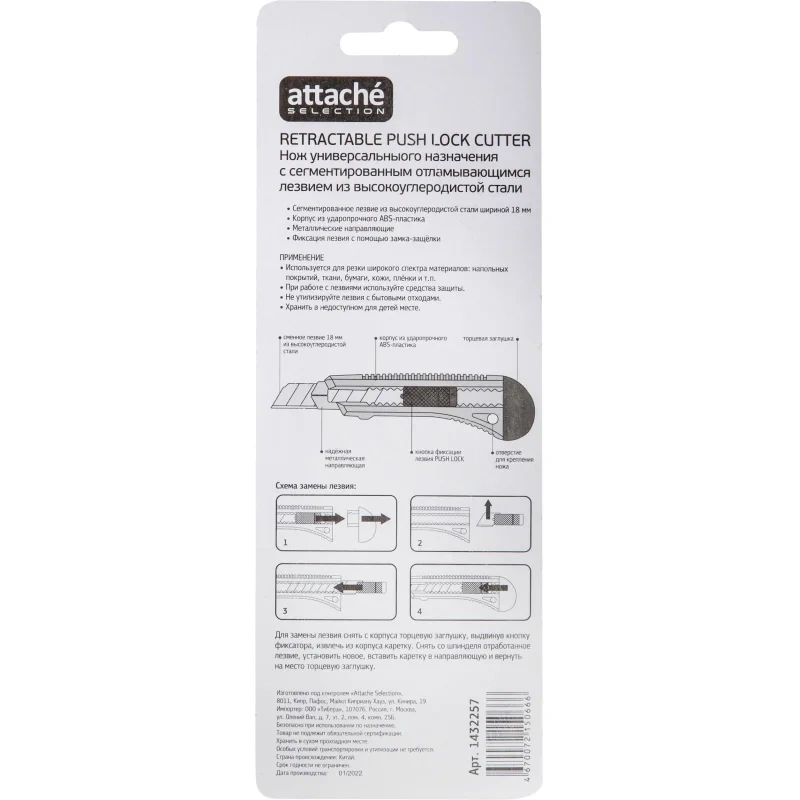 Нож универсальный Attache Selection 18мм,метал.направл.,Push lock