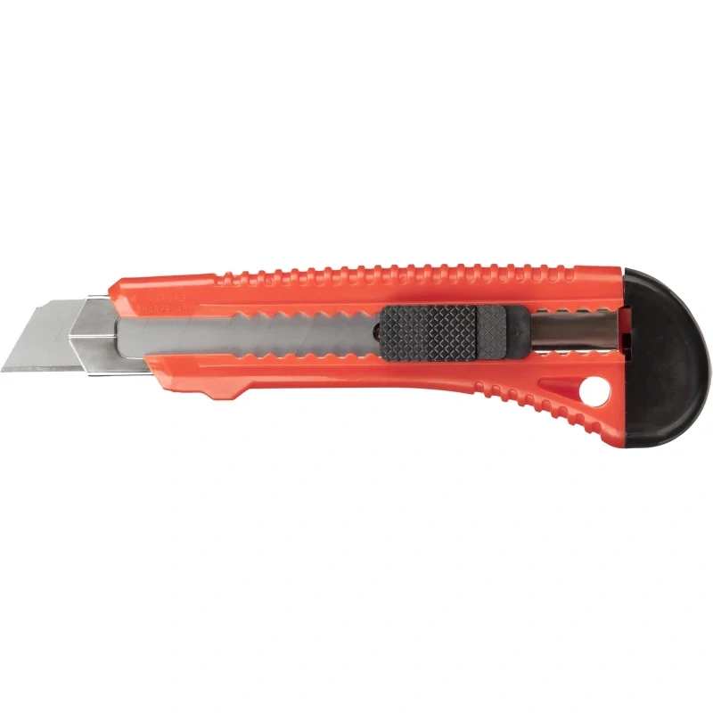 Нож универсальный TOPFORT 18мм с мет.напр.,дв.сист.выдв.+блок.лезв.,ABS+TPR