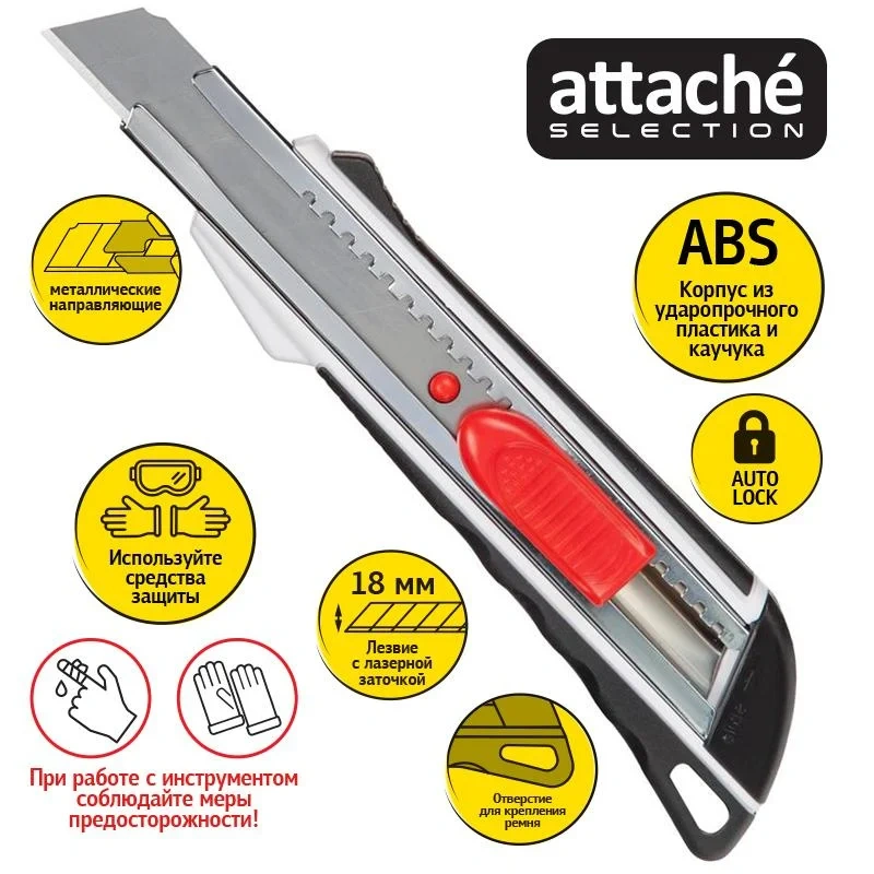 Нож канцелярский 18мм Attache с фиксатором и металлическими направляющими