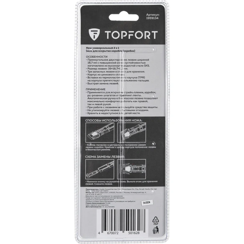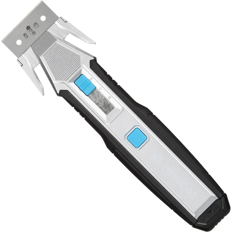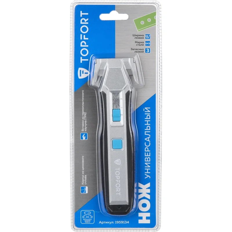 Нож универсальный скребок+д/вскр.упак.матер. TOPFORT,цинк+TPR,3 зап.лезв