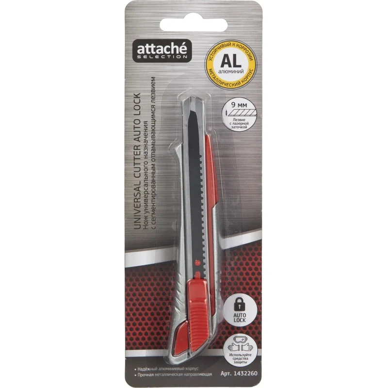 Нож универсальный Attache Selection 9мм,метал.напр.,алюм.корпус,Auto lock