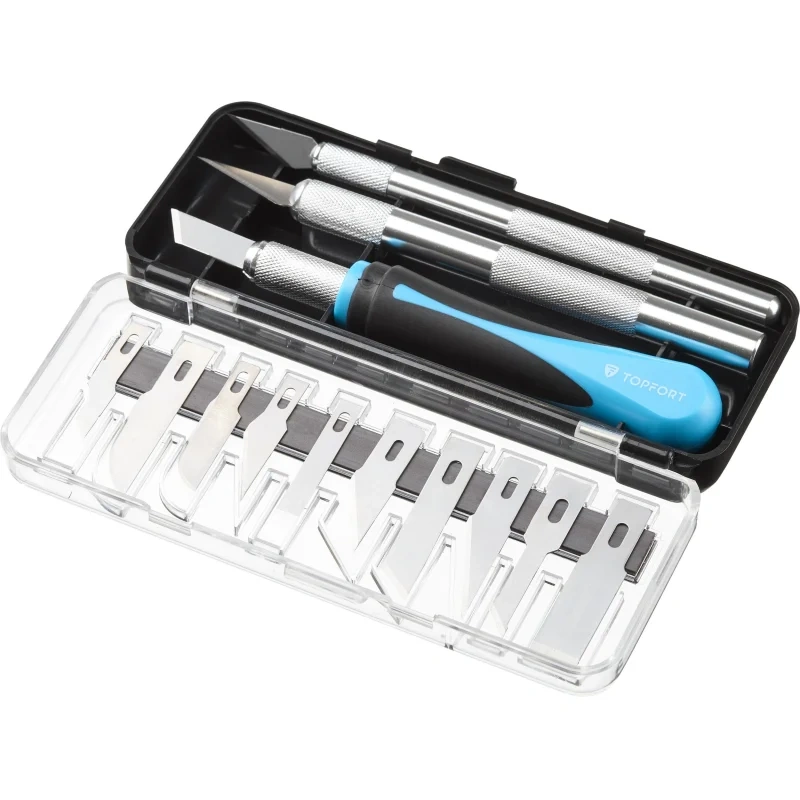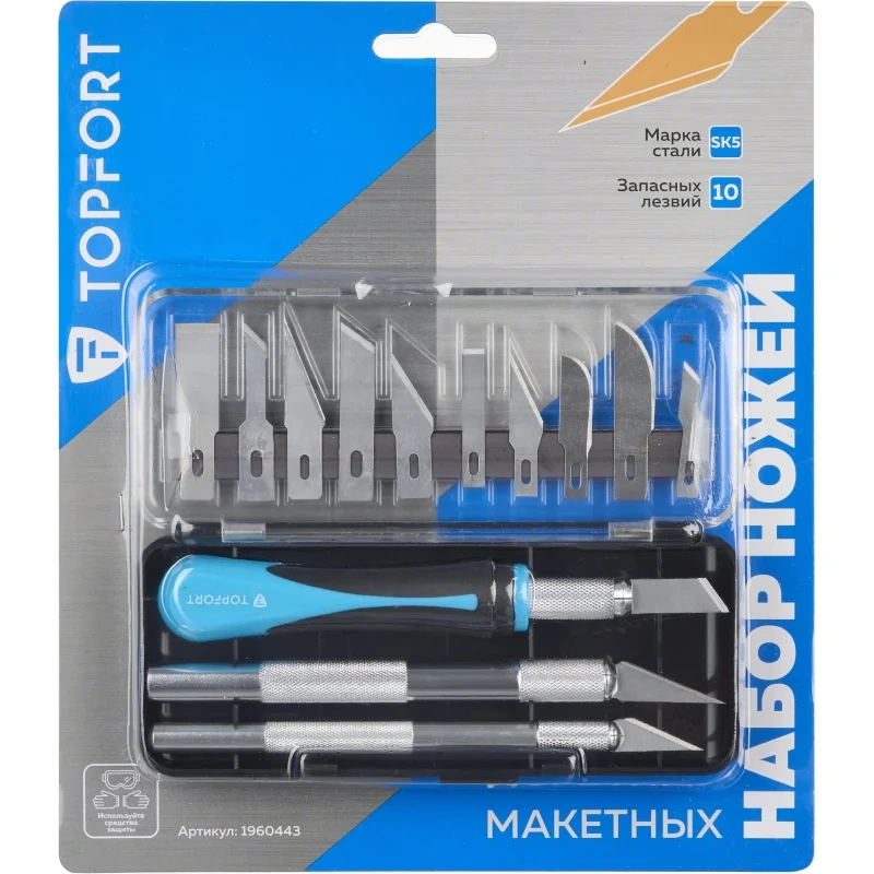 Нож макетный TOPFORT Набор 16поз:нож 3шт,10 лезв.разн.тип,пласт.бокс