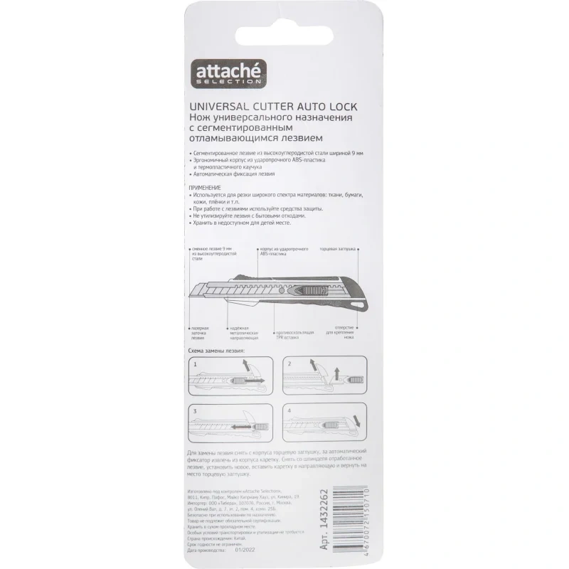 Нож универсальный Attache Selection 9мм,метал.напр.,пласт.корпус,Auto lock