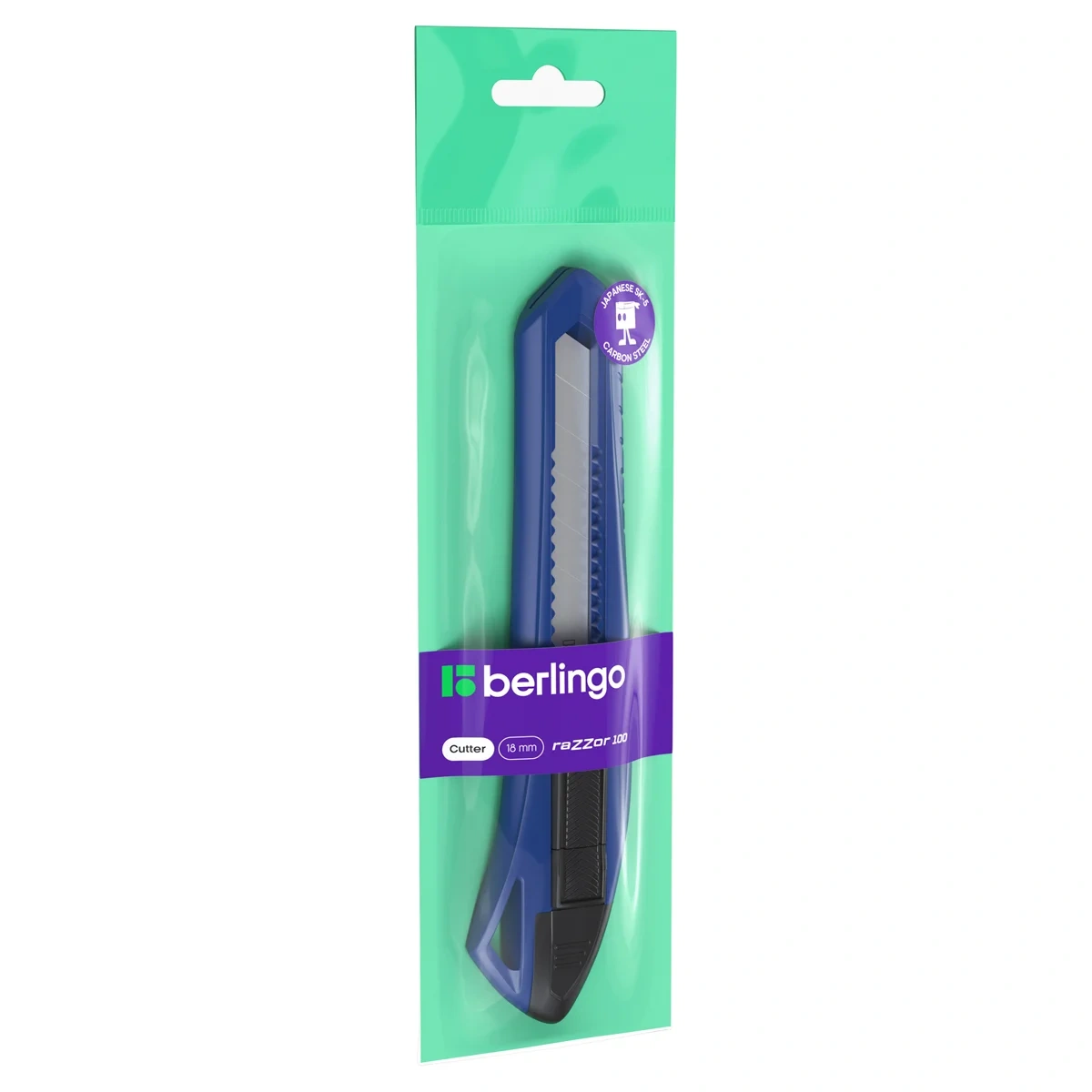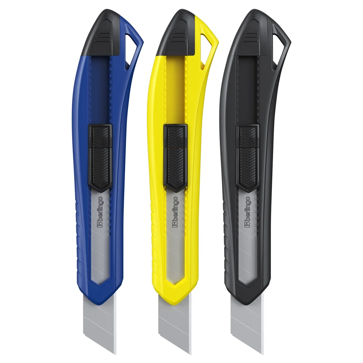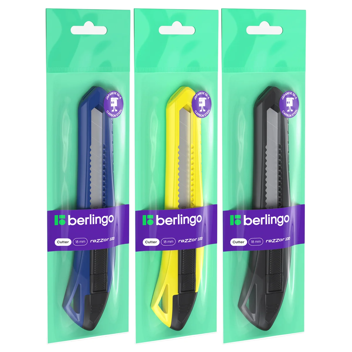 Нож канцелярский 18мм Berlingo 'Razzor 100', push-lock, ассорти, европодвес