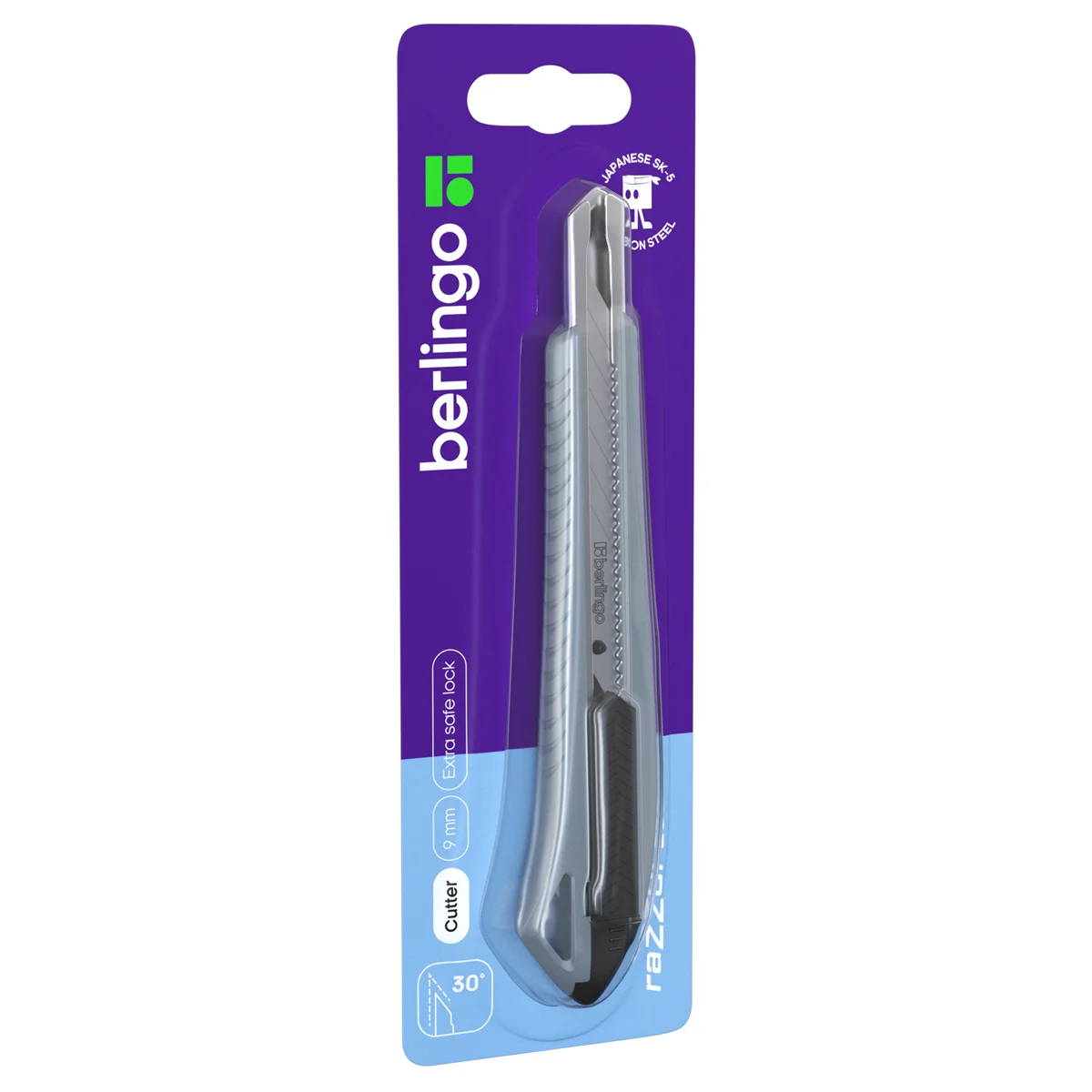 Нож канцелярский 9мм Berlingo 'Razzor 200', auto-lock, металл. направл., серый, европодвес