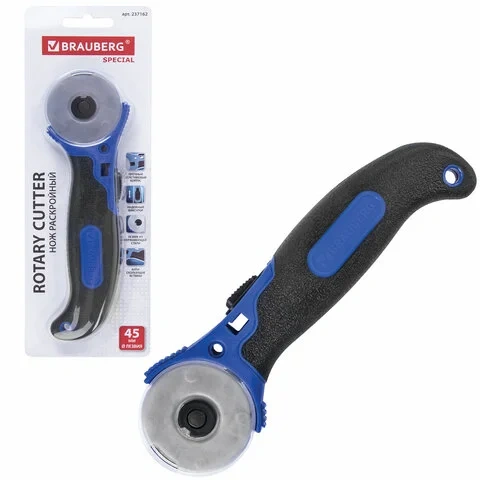 Нож раскройный роликовый 45 мм BRAUBERG PROFESSIONAL, круглое лезвие, резиновые вставки, 238087