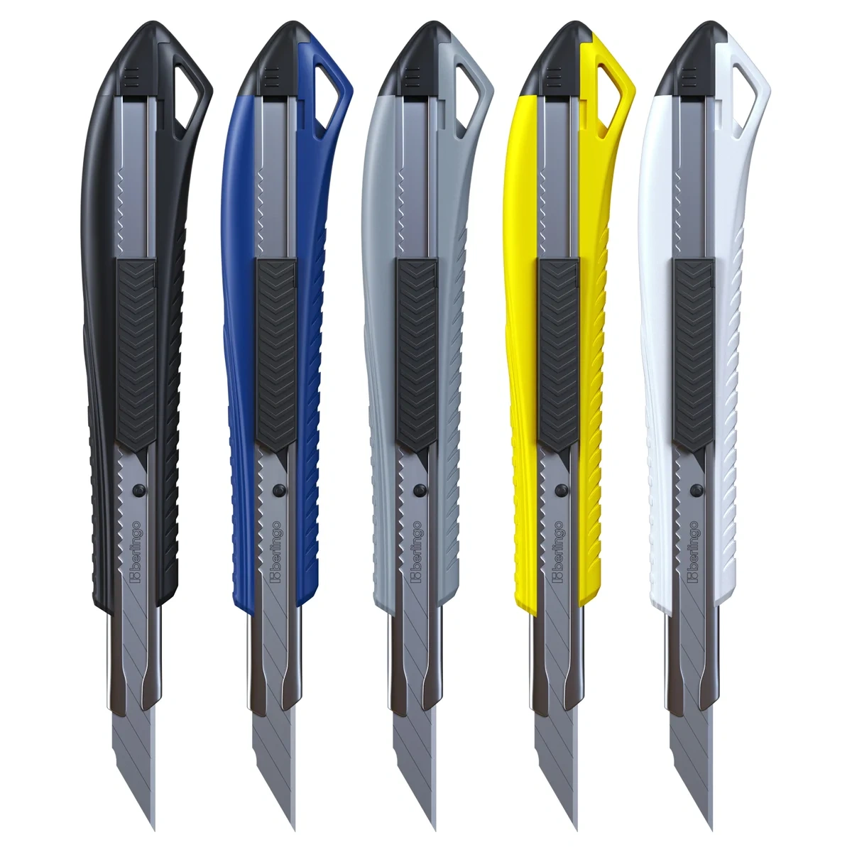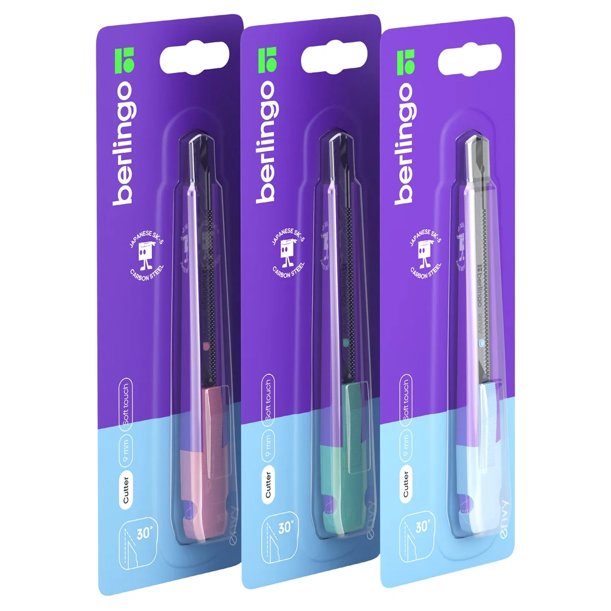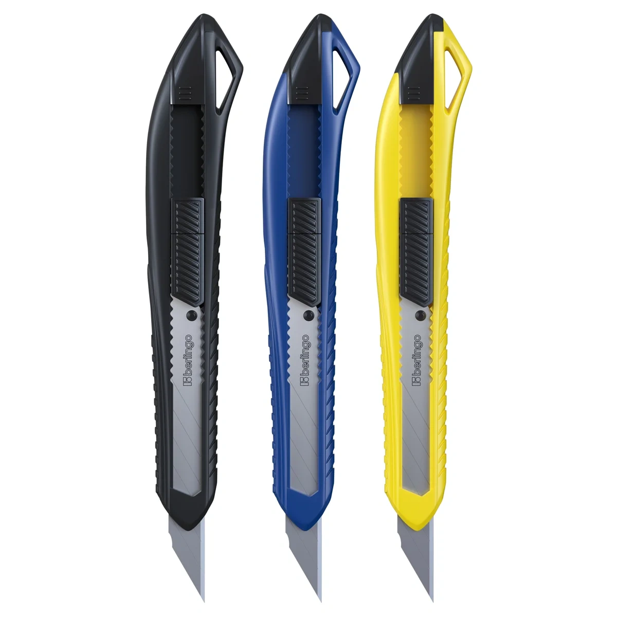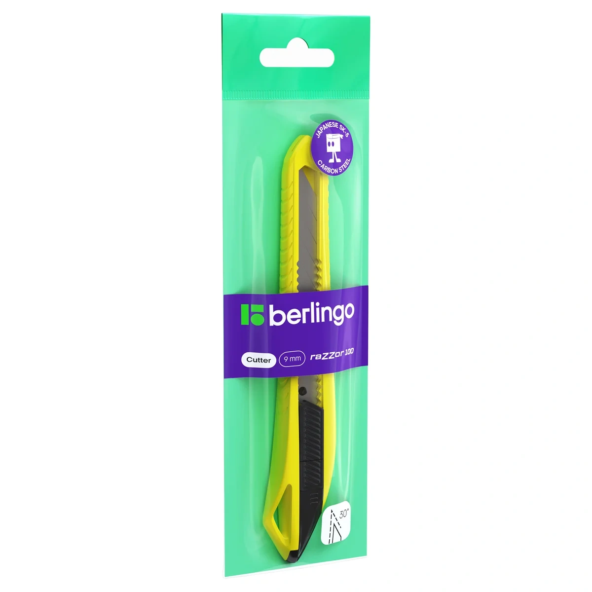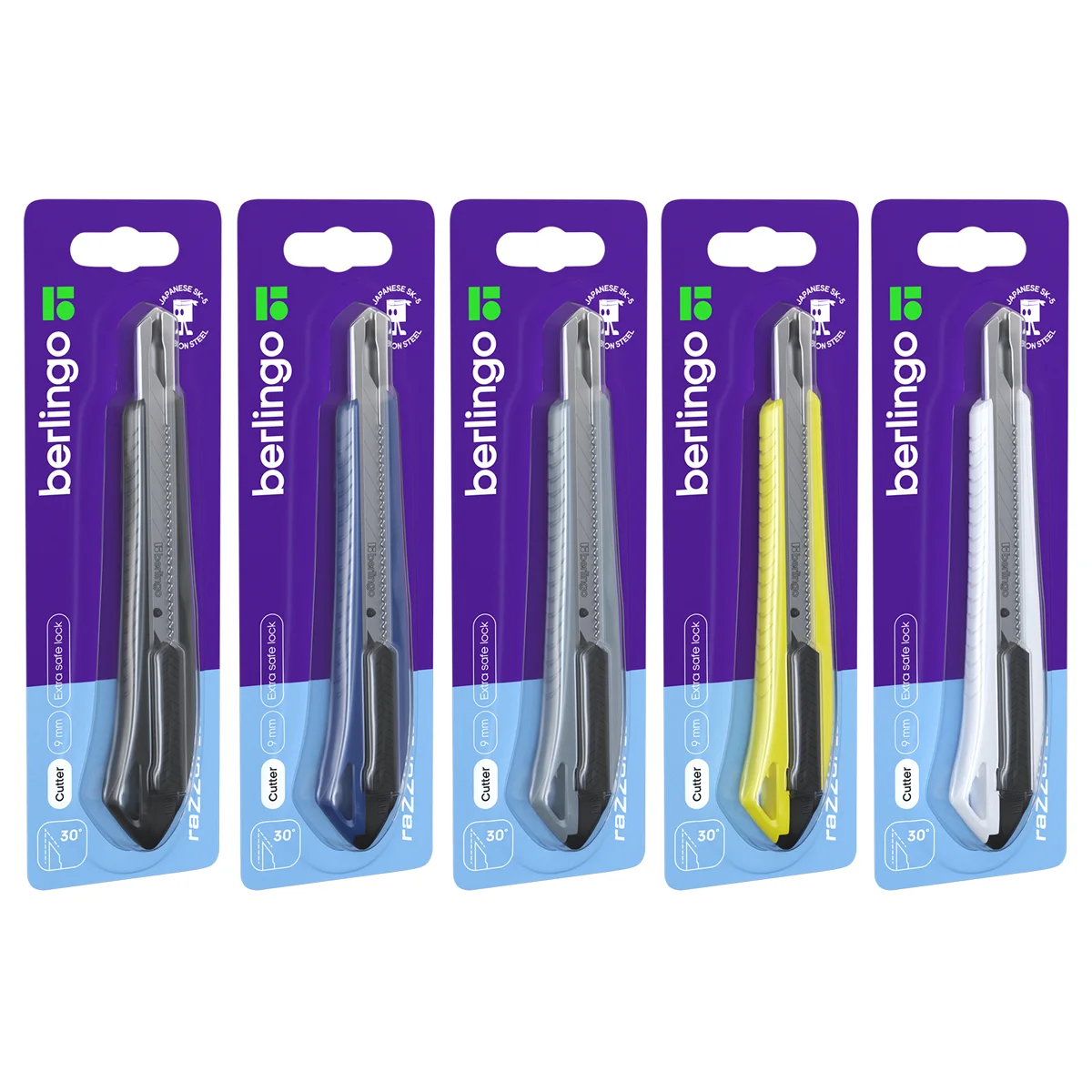 Нож канцелярский 9мм Berlingo 'Razzor 100', push-lock, ассорти, европодвес