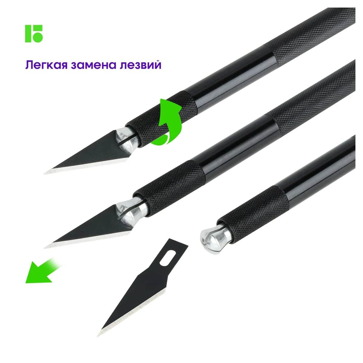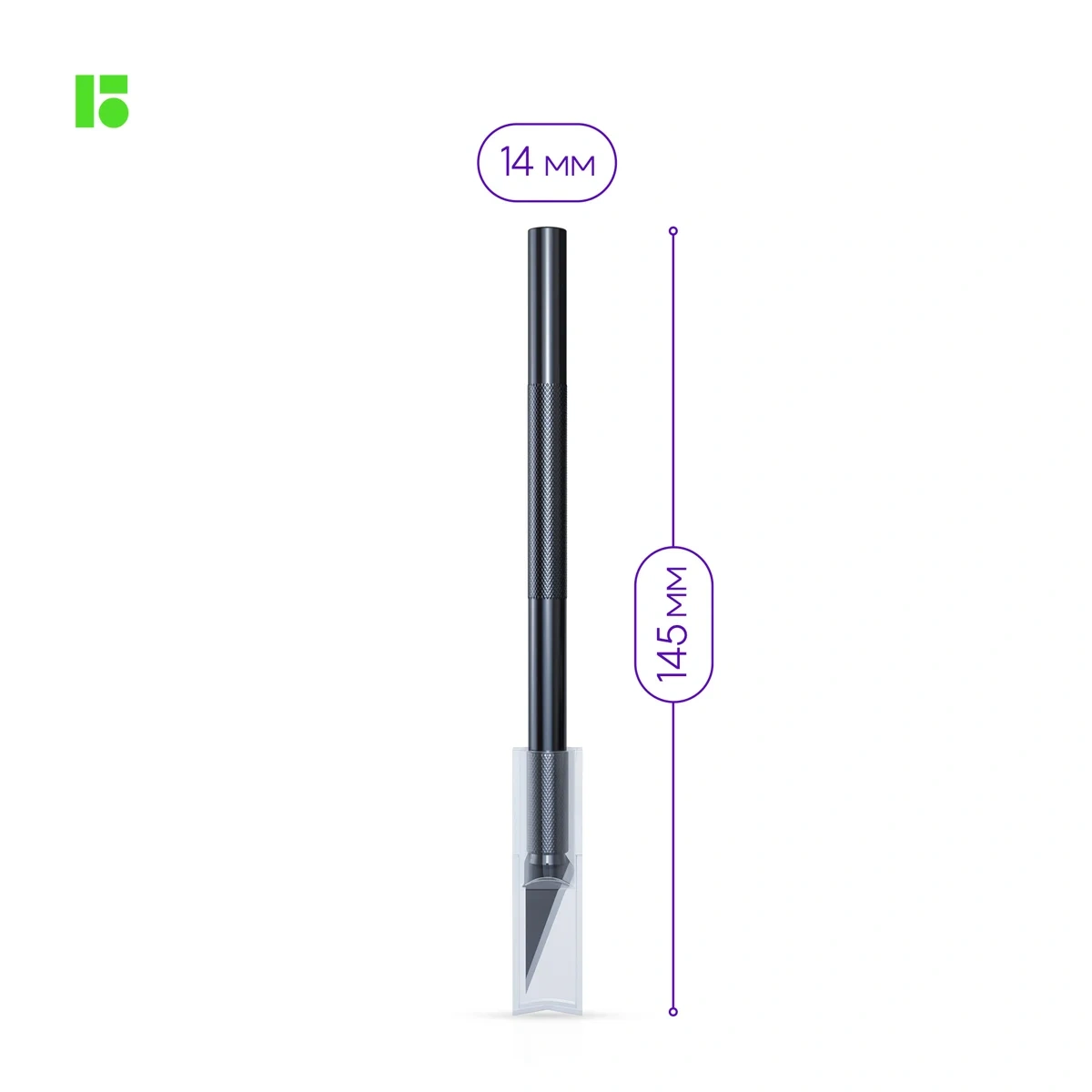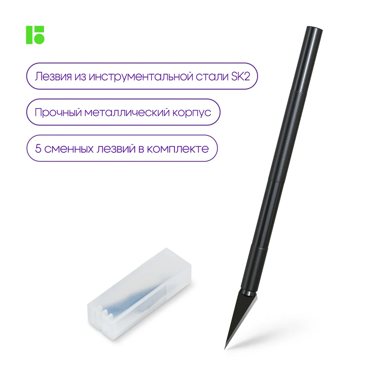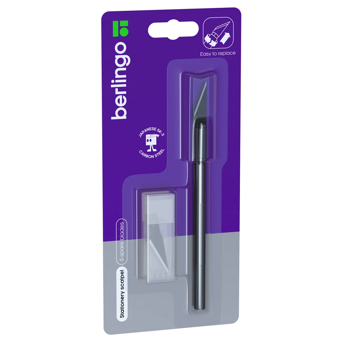 Нож-скальпель канцелярский Berlingo, металлический корпус черного цвета, 5 лезвий в комплекте, европ