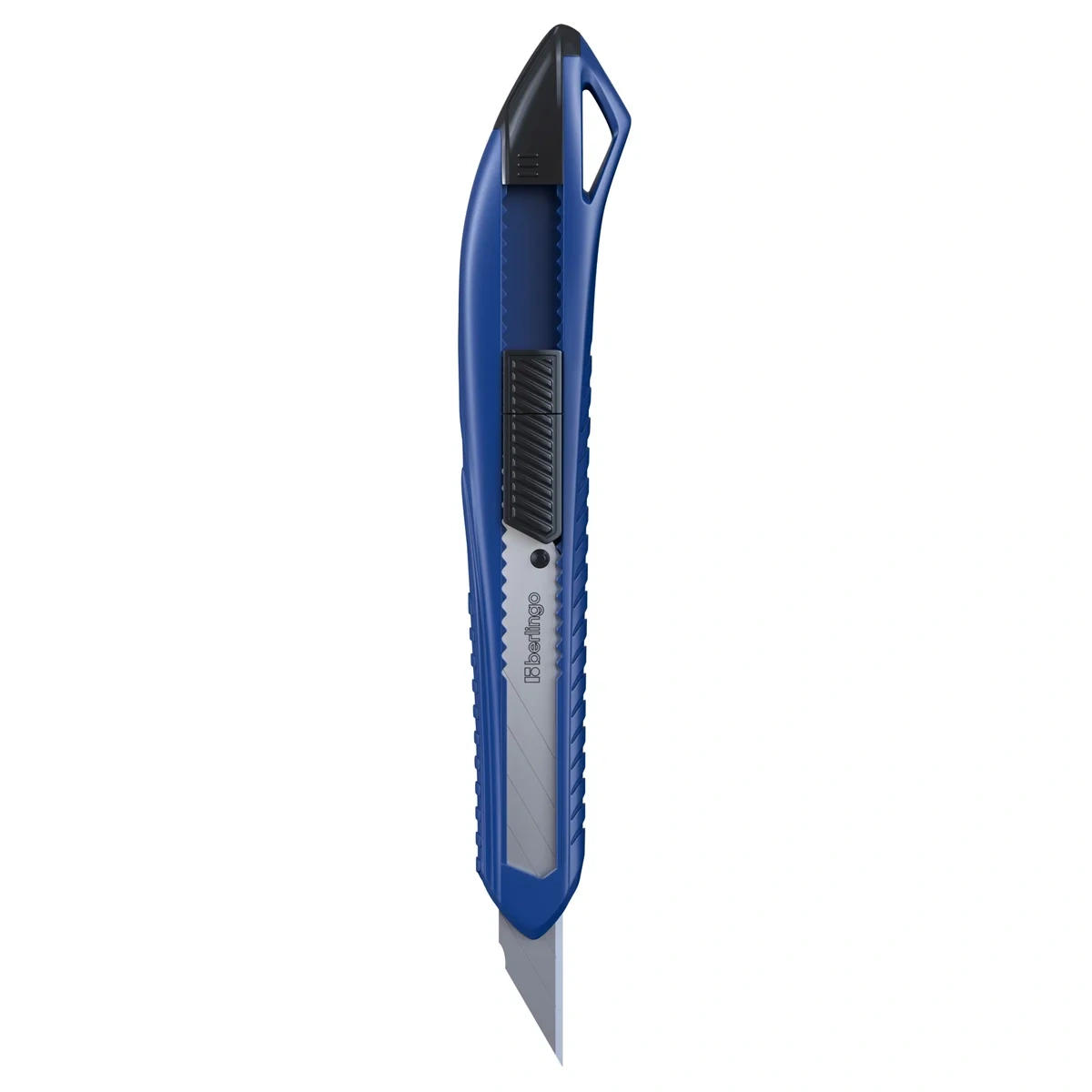 Нож канцелярский 9мм Berlingo 'Razzor 300', auto-lock, металл. направл., мягкие вставки, синий, евро