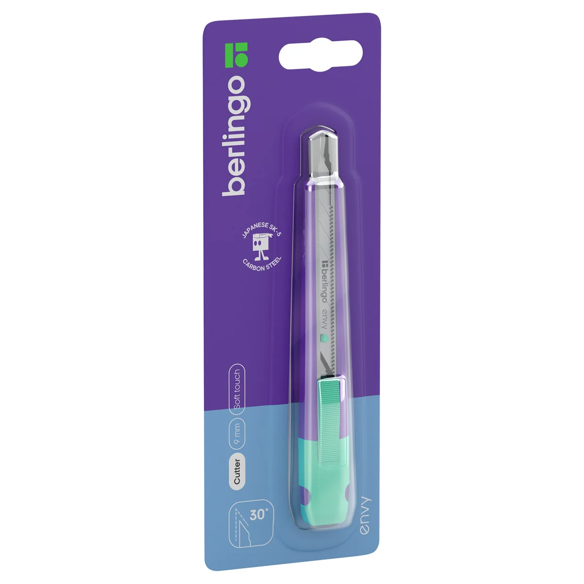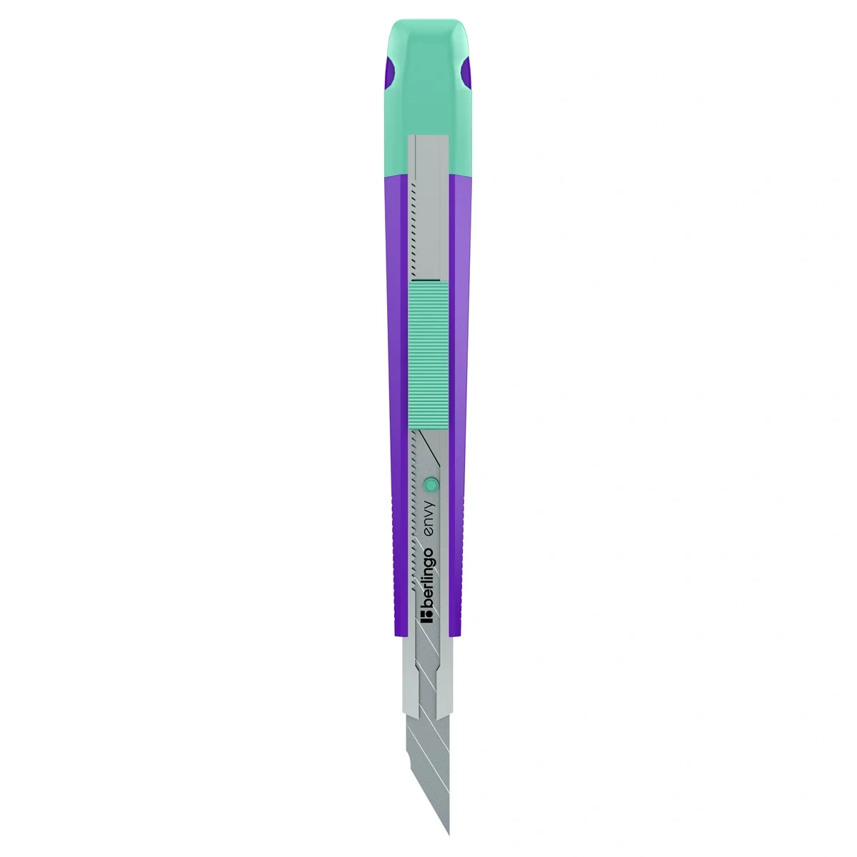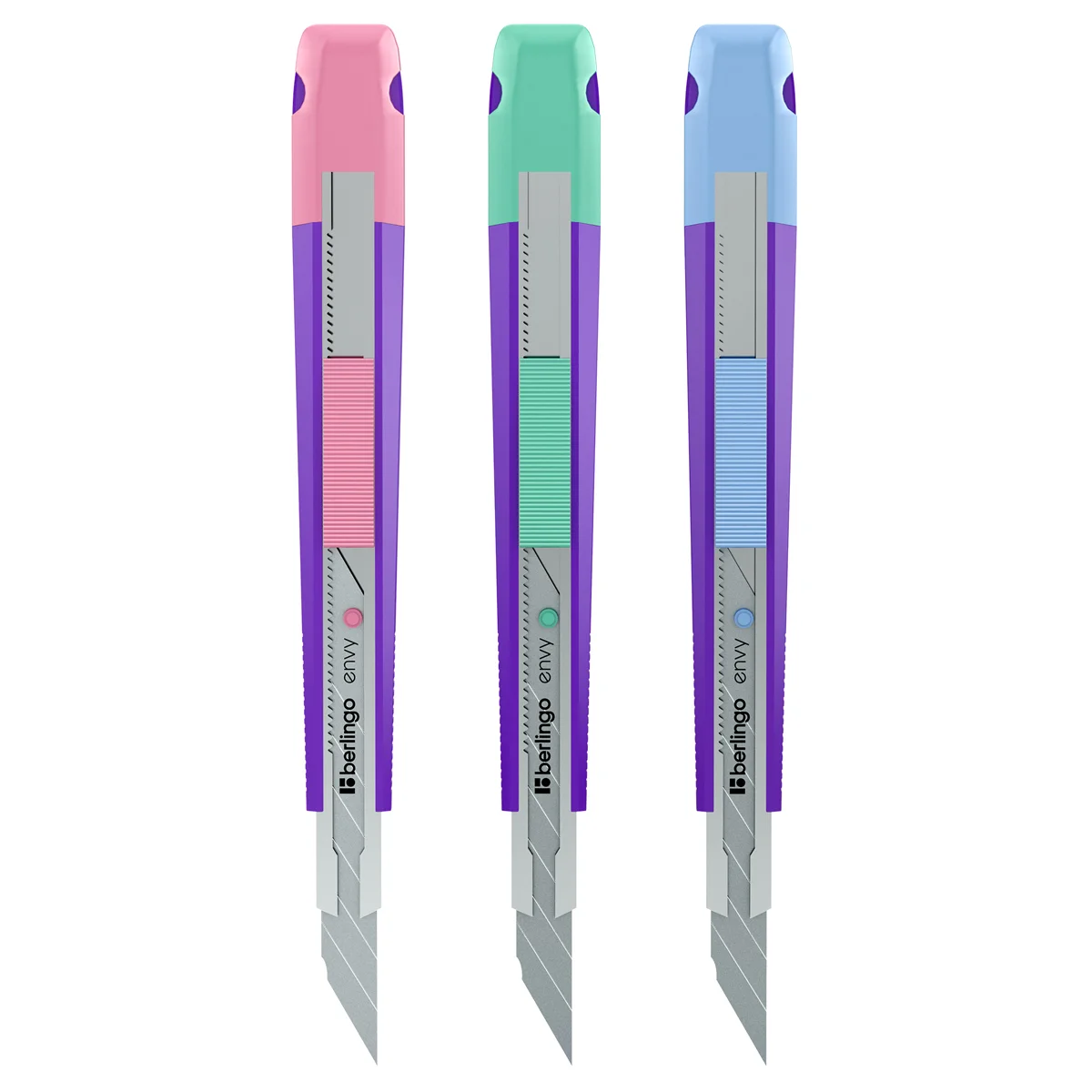 Нож канцелярский 9мм Berlingo 'Envy', auto-lock, металл. направл., ассорти, европодвес