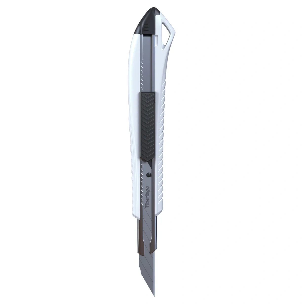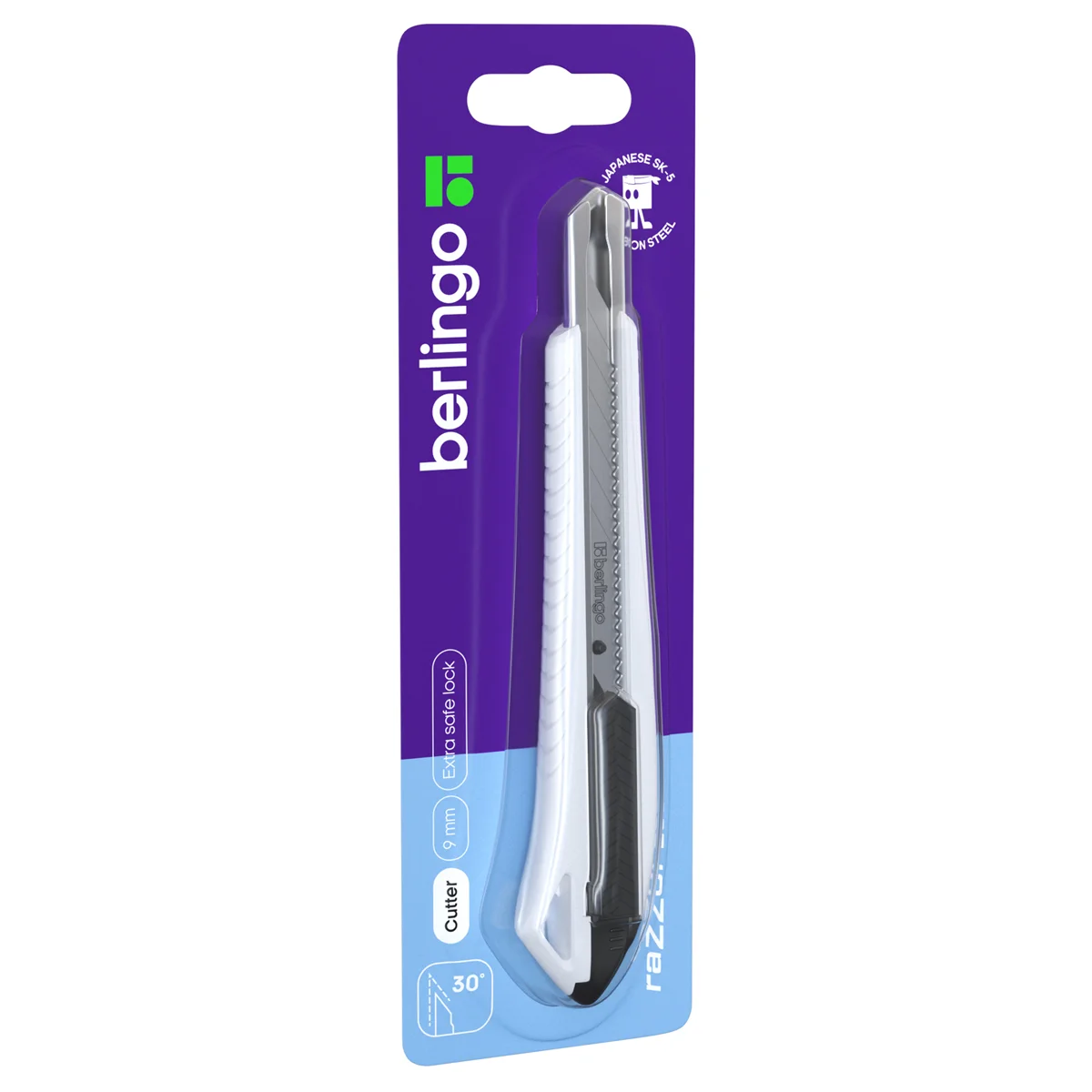 Нож канцелярский 9мм Berlingo 'Razzor 200', auto-lock, металл. направл., белый, европодвес