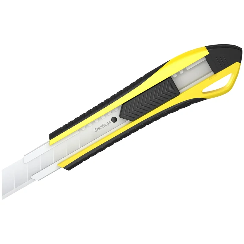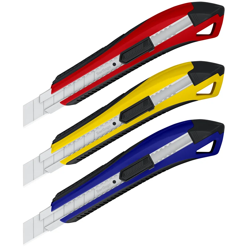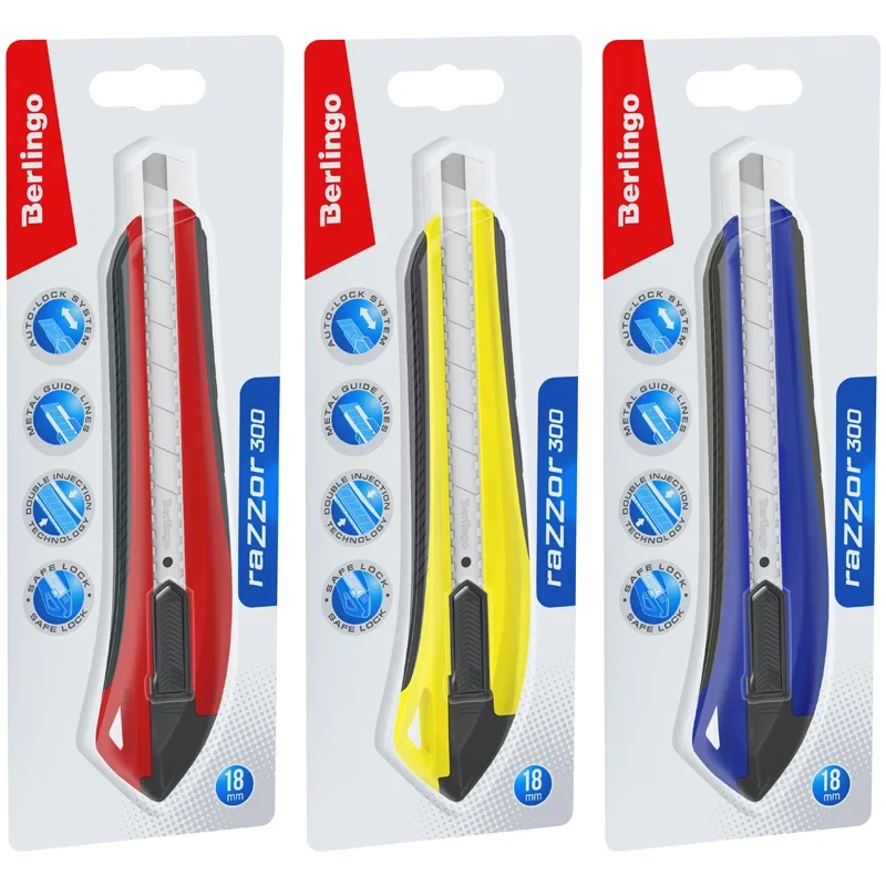 Нож канцелярский 18мм Berlingo 'Razzor 300', auto-lock, металл. направл., мягкие вставки, ассорти, е