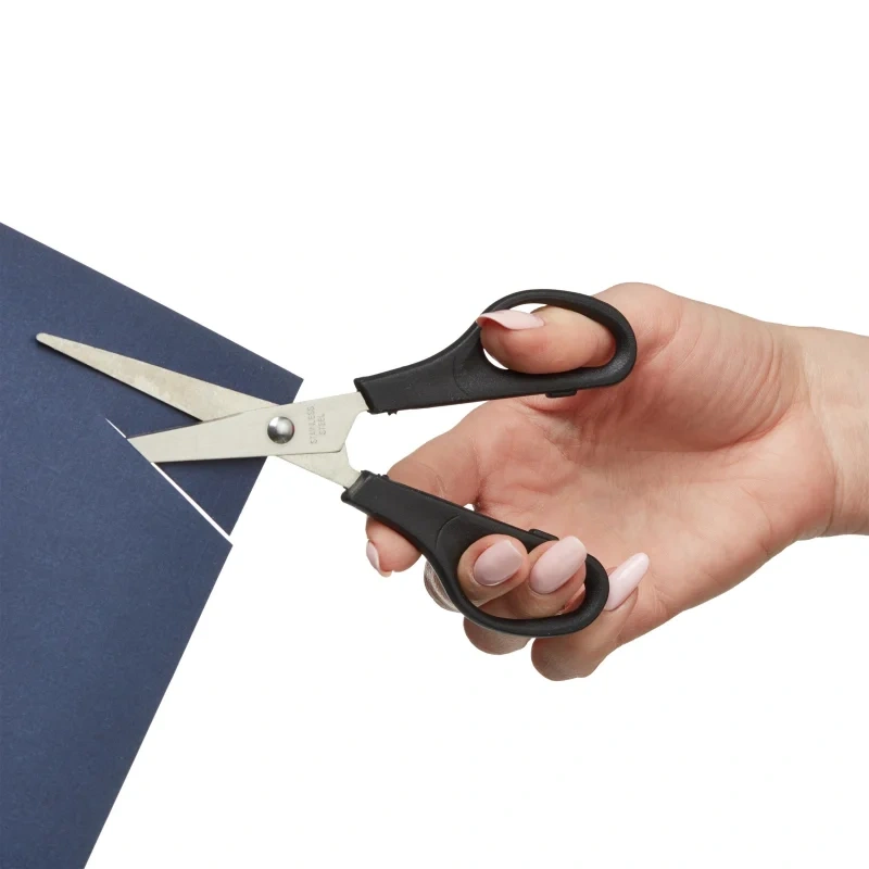 Канцелярские ножницы (офисные) Выбор есть имеют лезвия, выполненные из стали. Ручки выполнены из пластика черного цвета. Двухсторонняя заточка лезвий. Длина ножниц — 16 см.