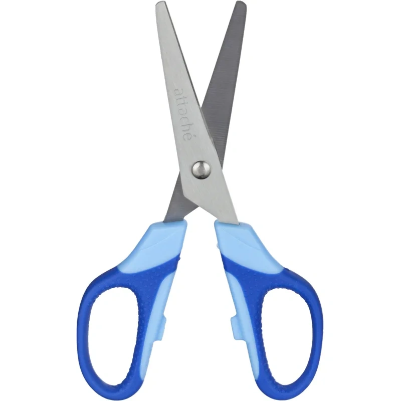 Ножницы Attache Ergo&Soft 140 мм симметричные с пластиковыми прорезиненными ручками синего/голубого цвета