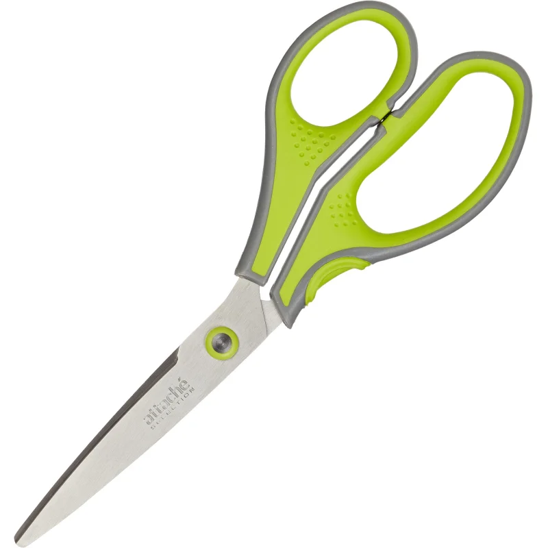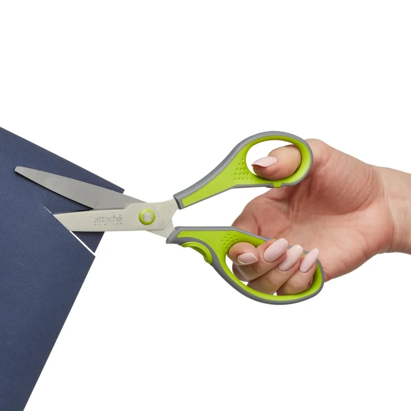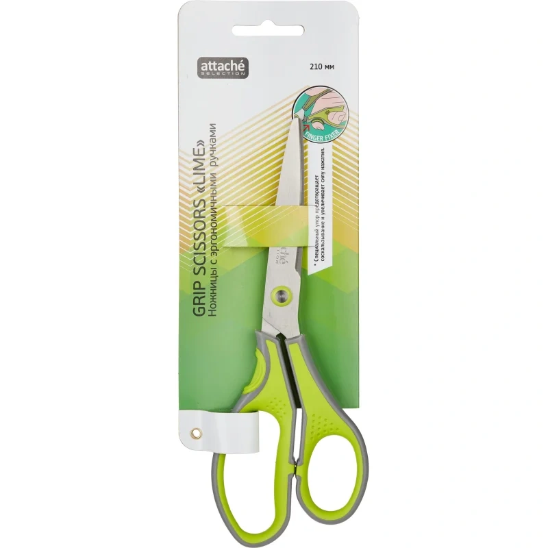 Ножницы Attache Selection 21см, серо-салатовые, с анатомическими ручками