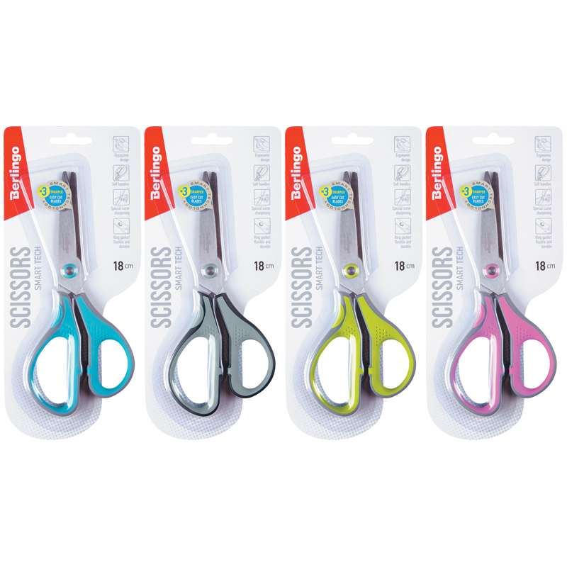 Канцелярские ножницы Berlingo Smart tech 18см, ассорти, эргономичные ручки