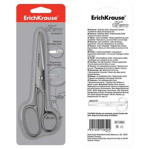 Ножницы Erich Krause Ferro 18см, серебристые, 14852
