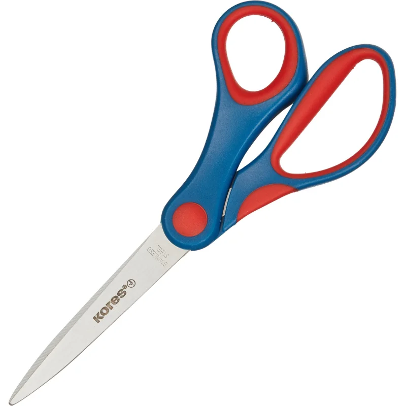 Канцелярские ножницы (офисные) Kores серии Softgrip, подходящие для работы с материалами любой плотности. Лезвия выполнены из нержавеющей стали. Пластиковые ручки анатомической формы оснащены прорезиненными манжетами, предотвращающими скольжение пальцев.