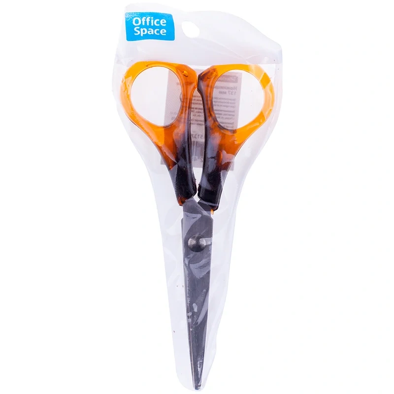 Ножницы канцелярские из нержавеющей стали, длина 137 мм, ручки под янтарь, толщина лезвий 1,4 мм