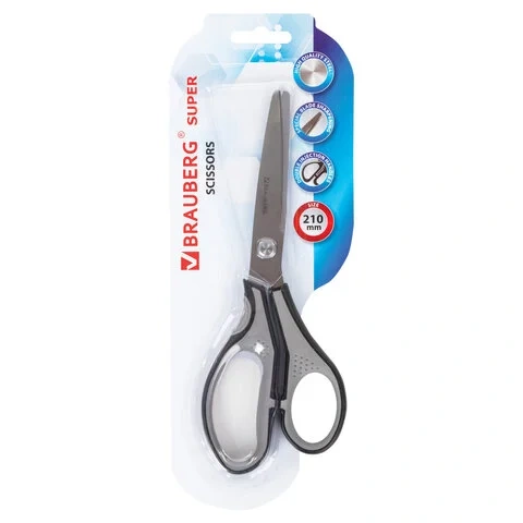 Ножницы BRAUBERG SUPER, 210 мм, серо-черные, 2-х сторонняя заточка, 237296