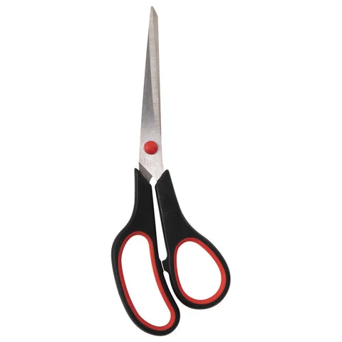 Ножницы STAFF EVERYDAY, 195 мм, бюджет, резиновые вставки, черно-красные, ПВХ чехол, 237499